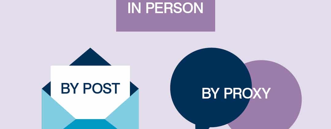 You can cast your vote however it suits you – in person, by post or by proxy, which is when you identify someone to vote on your behalf.